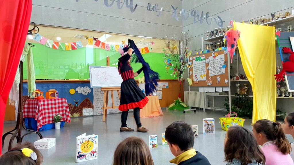 Para seguir trabajando la poesía a través de Gloria Fuertes, las mamás de nuestras clases se ofrecieron a representar algunos de los poemas trabajados. Esto ya fue la «guinda» para que se convirtieran en los mejores fans de Gloria Fuertes. Mirad con qué poco hicimos un teatro.