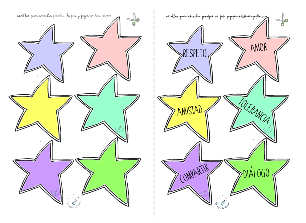 - Estrellas a color sin palabras, para ser rellenadas por los alumnos