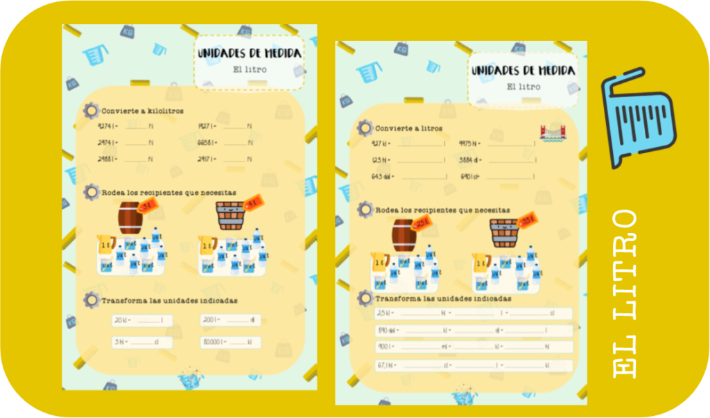 En las fichas encontraréis actividades relacionadas con el litro, el metro y el gramo.
