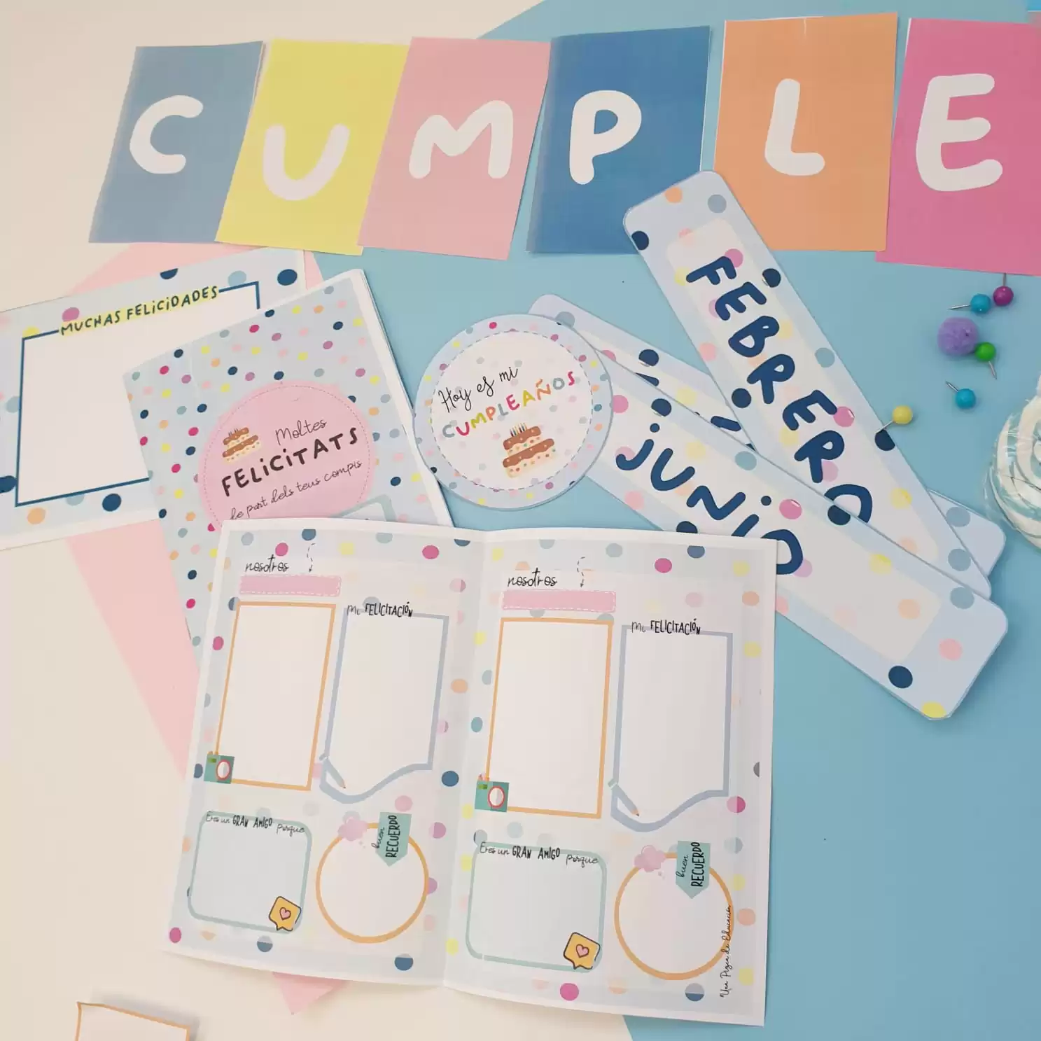 Curso tras curso nos encontramos celebrando cumpleaños en el aula: cantamos, damos tirones de orejas, felicitaciones… pues os hemos preparado un kit de cumpleaños para que no falte detalle. Al final del post encontraréis enlace al material (disponible en castellano, catalán y valenciano) y también podréis descargar el cartel decorativo para crear vuestro rincón de cumpleaños.