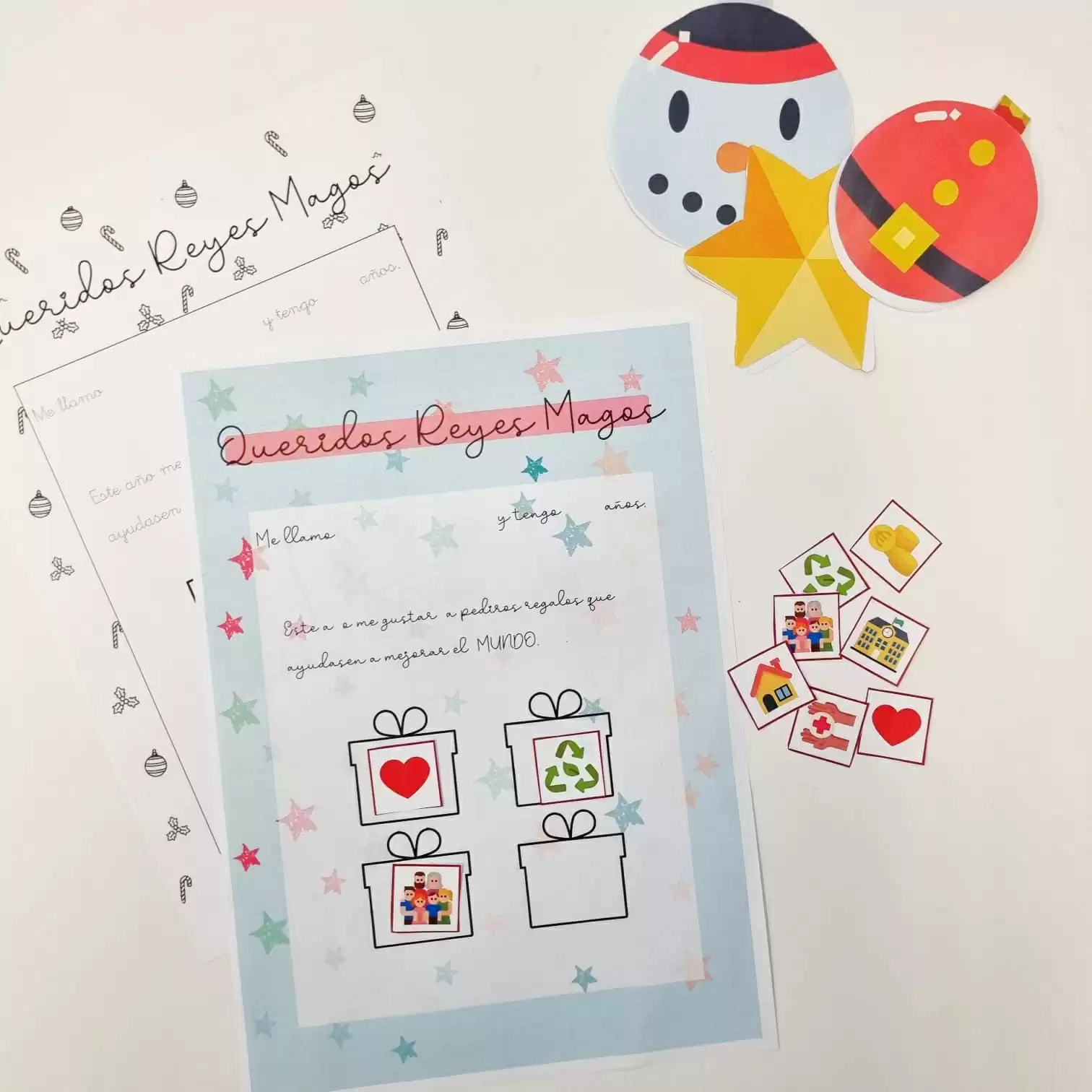 Después de la reflexión y revisar su lista de regalos, les daremos la carta de reyes magos, la que podéis descargar al final del post, junto con las pegatinas que simbolizan valores importantes como: salud, familia, educación…