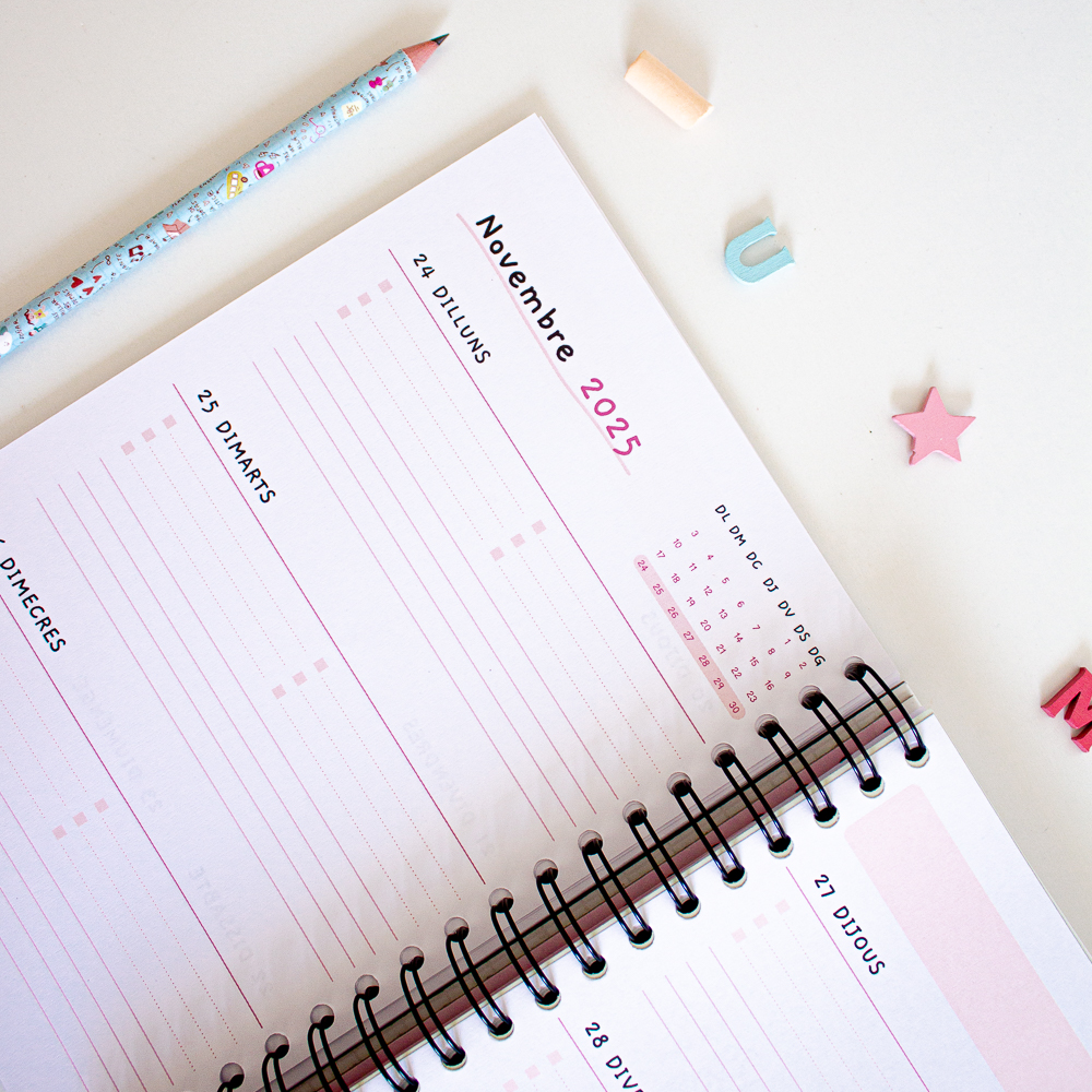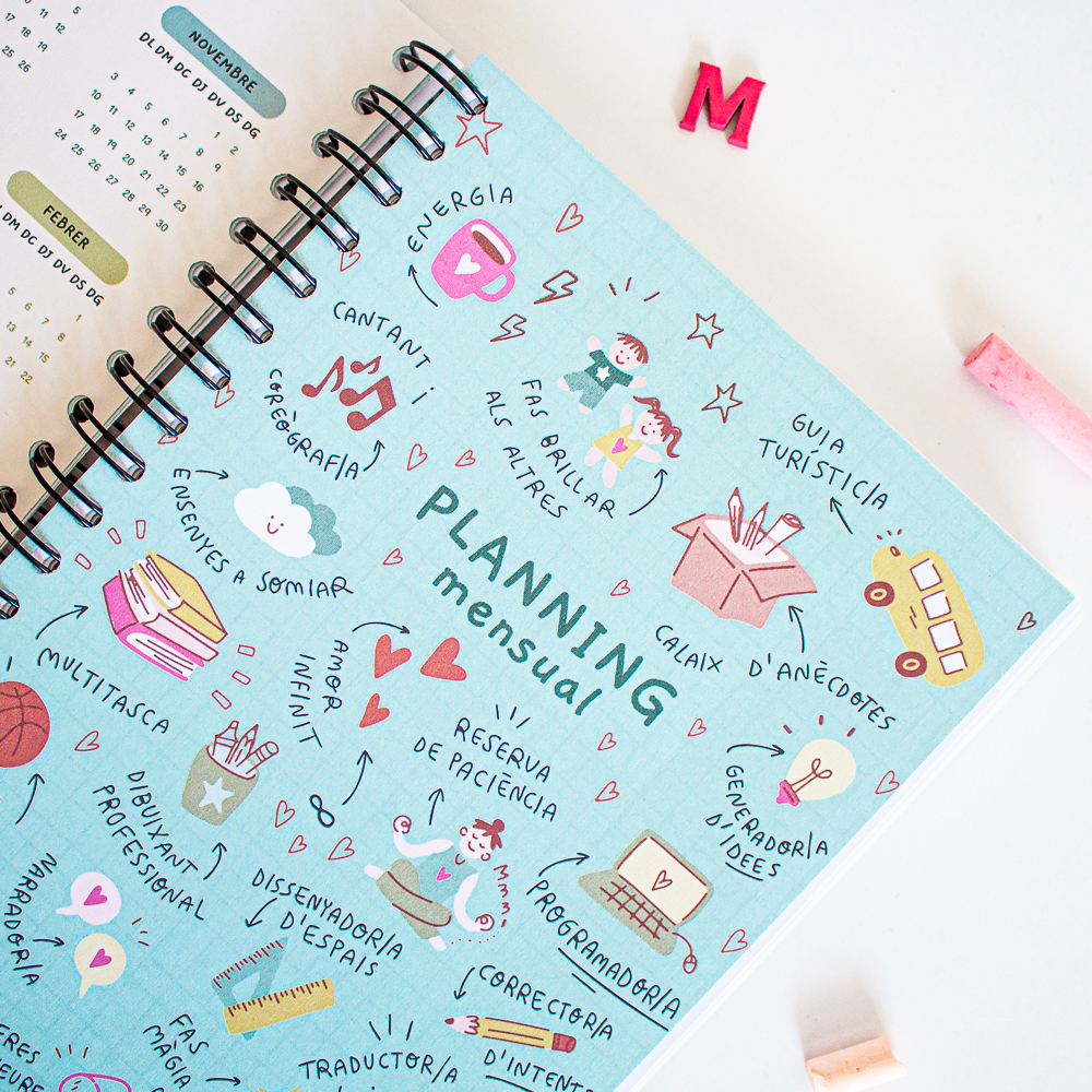 La agenda MAESTRA para el curso 25/26 es ideal para profes, maestras, futuras maestras y cualquier persona amante de la educación… Un montón de detalles, mimados y bonitos que la hacen muy especial: goma, diseño de portada, sobre en la contraportada, láminas preciosas que nos representan, tapas duras… y un interior que no nos puede enamorar más.  Además este curso incorpora un planning semanal para que puedas organizarte mucho más.