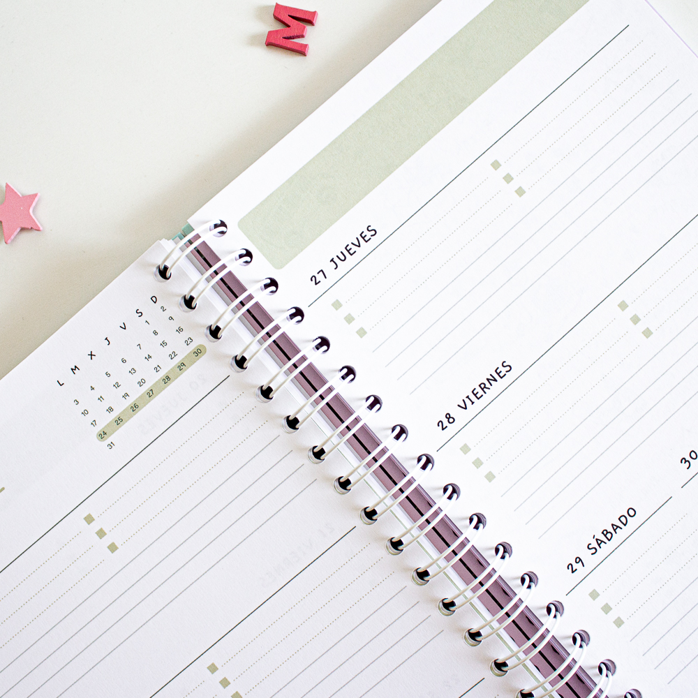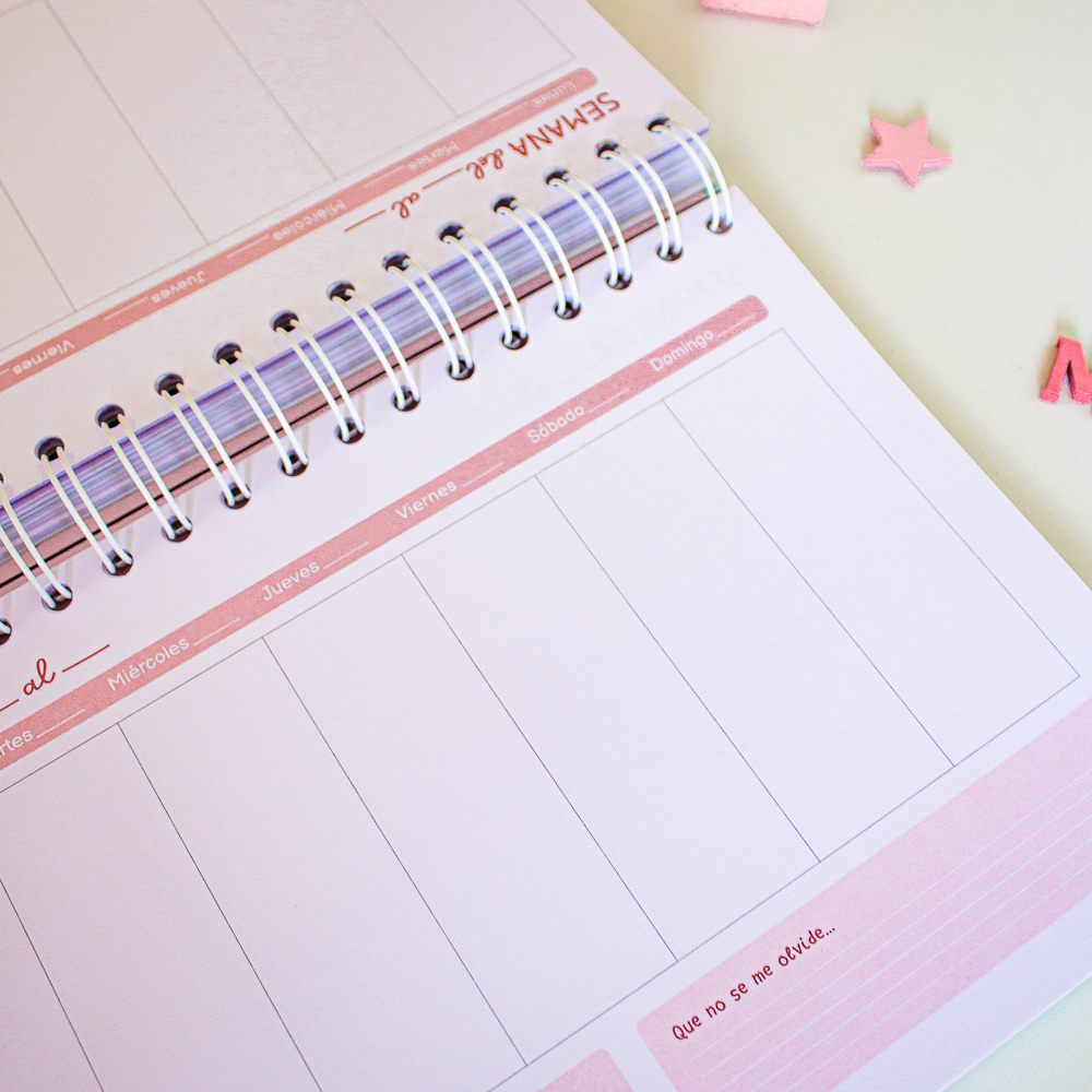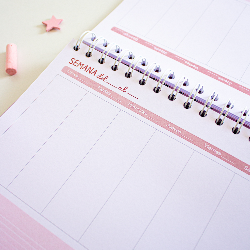 - Y ¡NOVEDAD! Planning semanal (26 hojas) sin fecha para organizarte como quieras y a tu ritmo.
