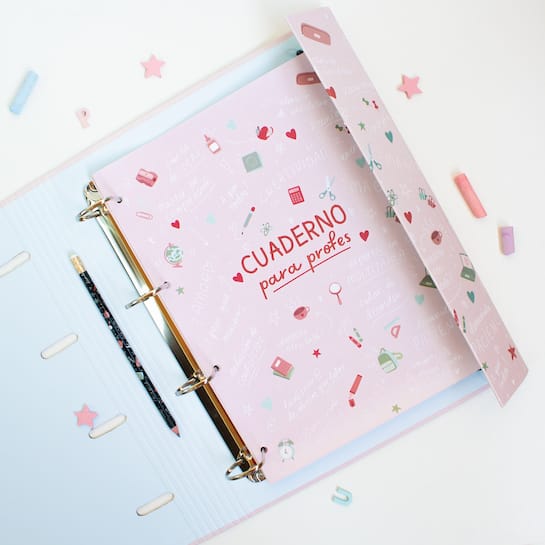 Puedes completarlo con el cuaderno Corazón de maestra en versión retractilada, te permitirá llevar todo lo que necesitas dentro del archivador: planificación, registro de reuniones, tutorías, registros de asistencia y evaluación…
