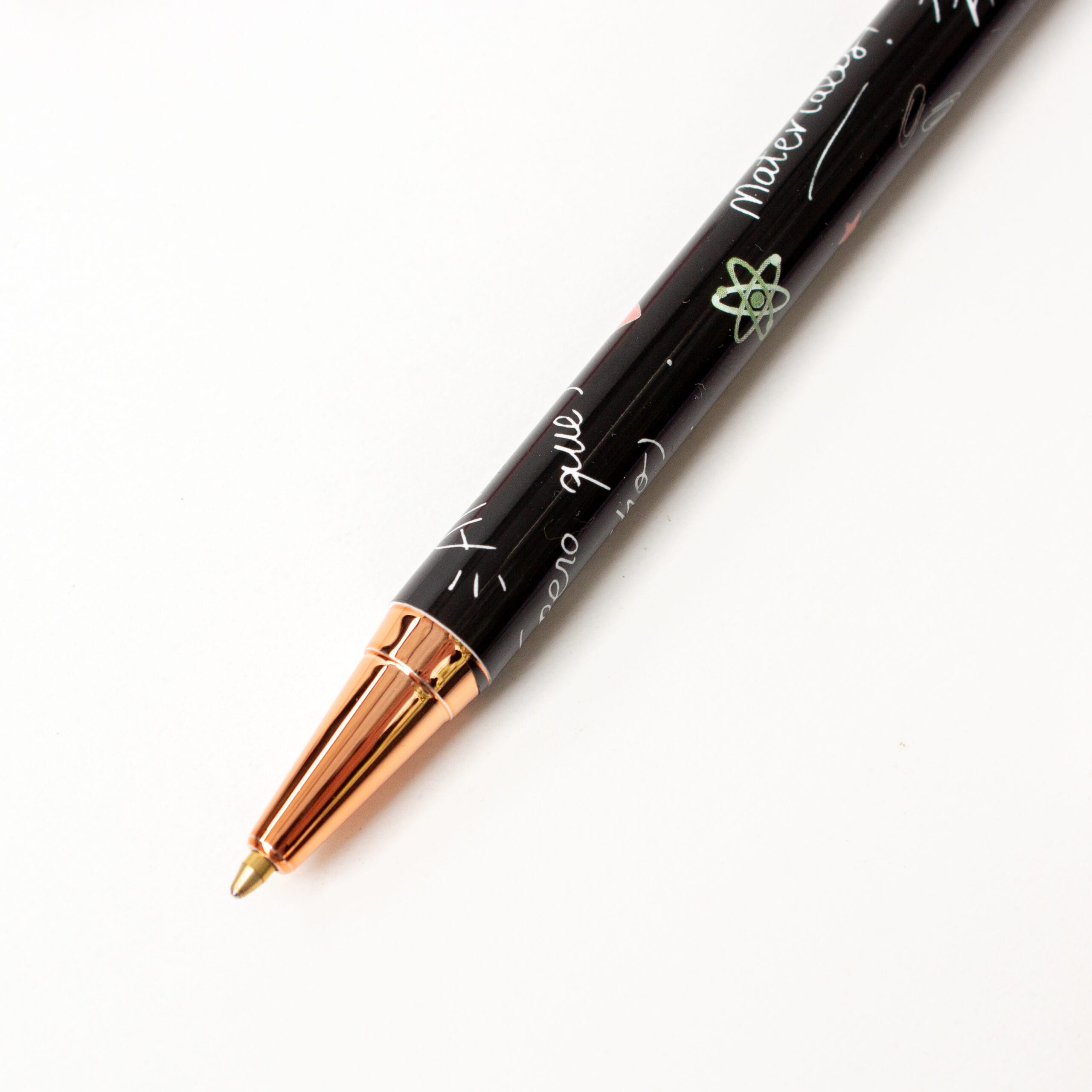 Se trata de un bolígrafo con un diseño a 360º y a todo color con fondo color negro. Con formato clip y tinta azul y punta metalizada de color dorado.