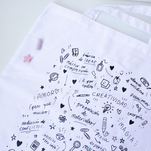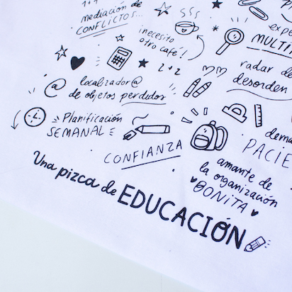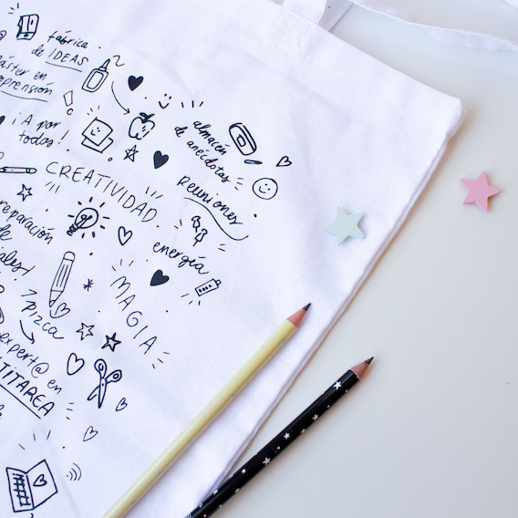 Bolso 100% de algodón orgánico ideal para llevar todo lo que necesitas para el cole. Con un diseño único y especial, el de nuestra nueva colección Corazón de Maestra. Un estampado lleno de motivos escolares que nos identifican.
