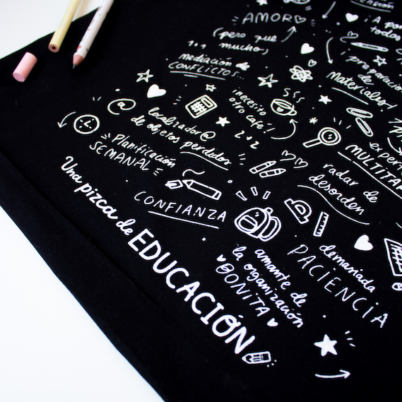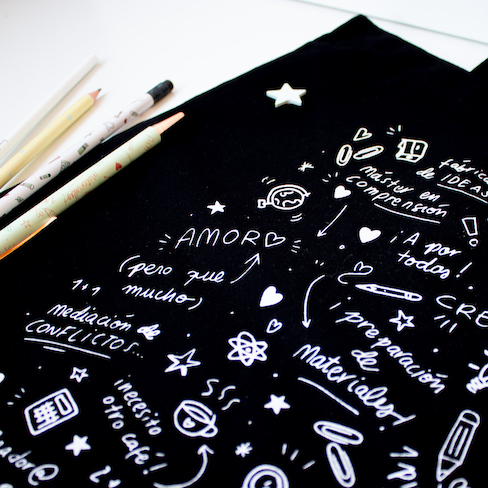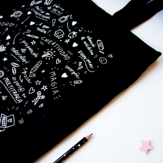 Bolso 100% de algodón orgánico ideal para llevar todo lo que necesitas para el cole. Con un diseño único y especial, el de nuestra nueva colección Corazón de Maestra. Un estampado lleno de motivos escolares que nos identifican.
