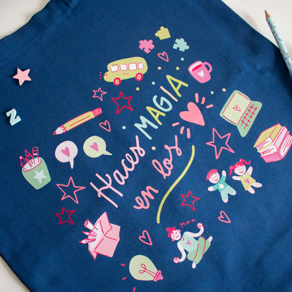El bolo haces magia es perfecto para llevar todo lo que necesitas para el cole. Con un diseño único y especia y además fabricado 100% algodón orgánico.