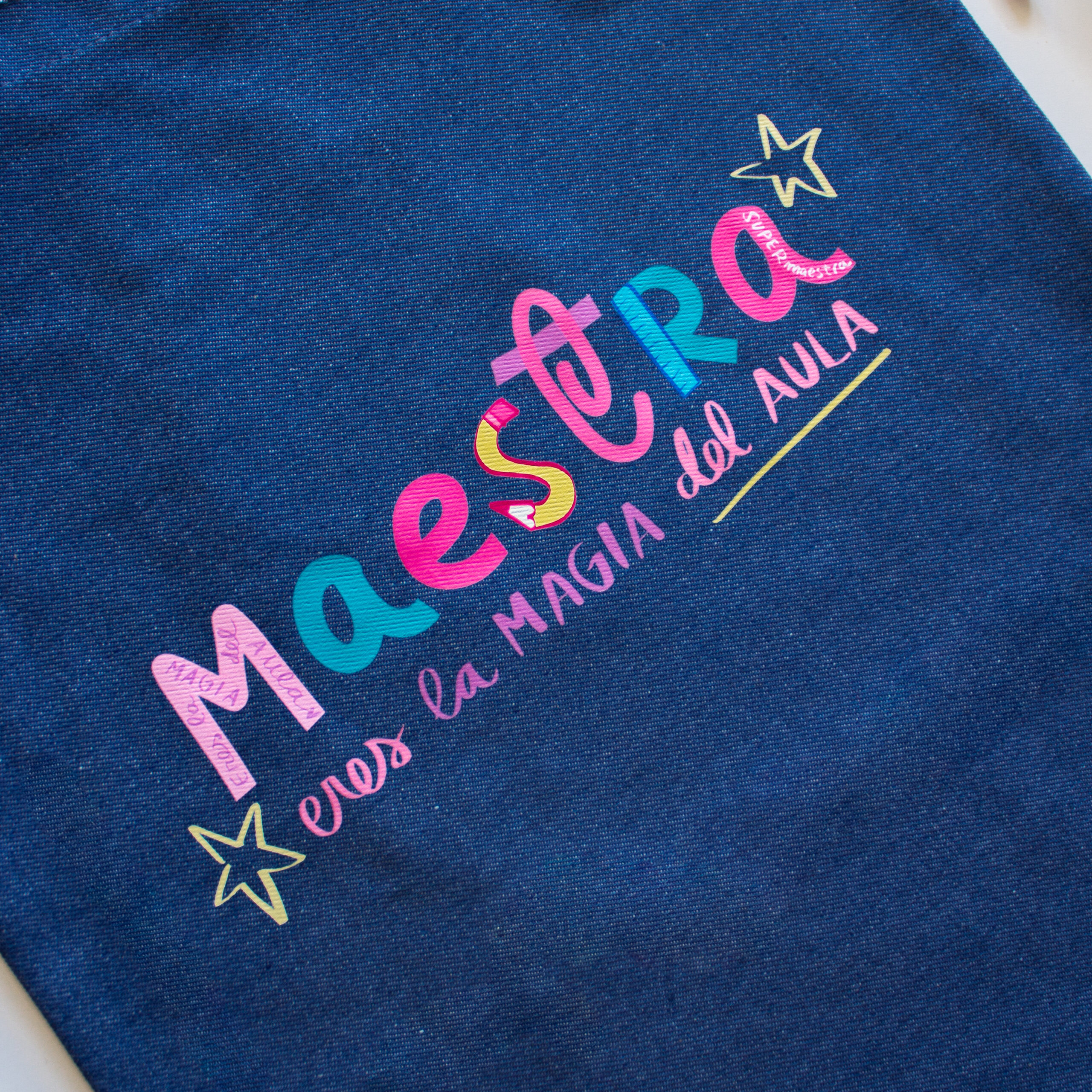 El bolo MAESTRA es perfecto para llevar todo lo que necesitas para el cole. Con un diseño único y personalizado que hará que luzcas más tu profesión. Fabricado en tejido vaquero reciclado.