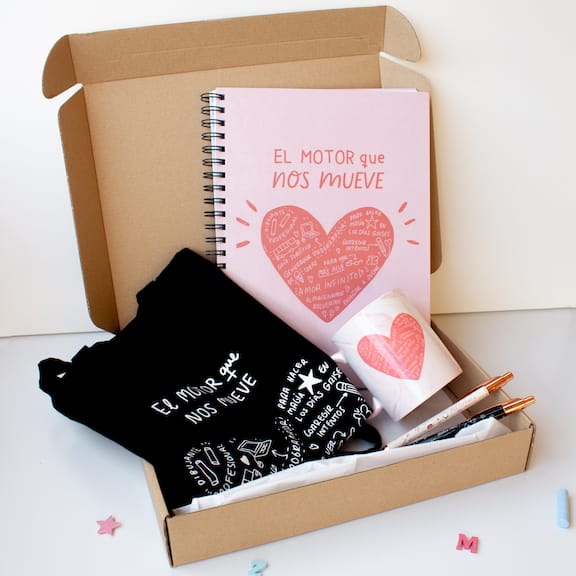 - Libreta corazón «El motor que nos mueve» en tamaño A4 y folios blancos.
