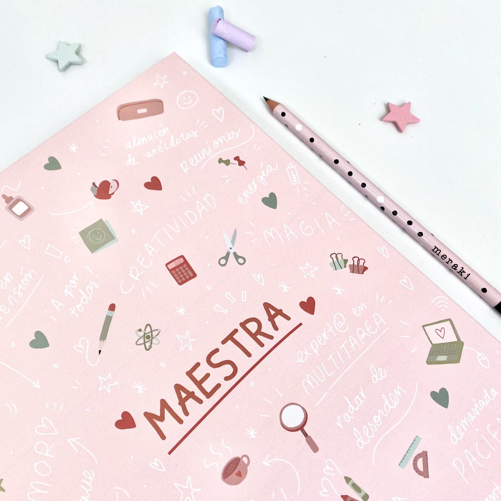 color libreta maestra | negro (colección 2023), corazon de maestra rosa (colección 2024) |