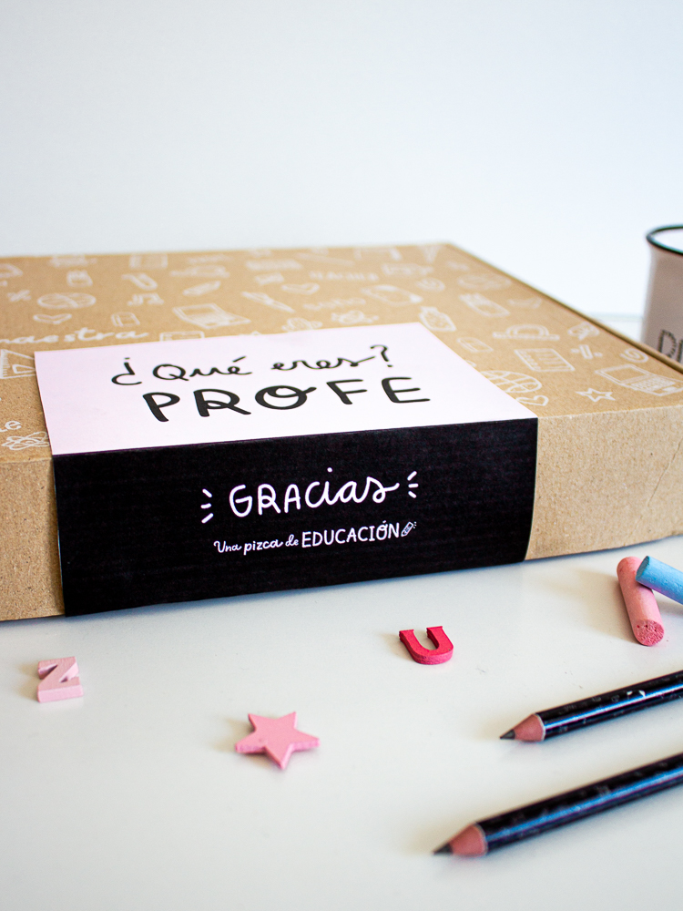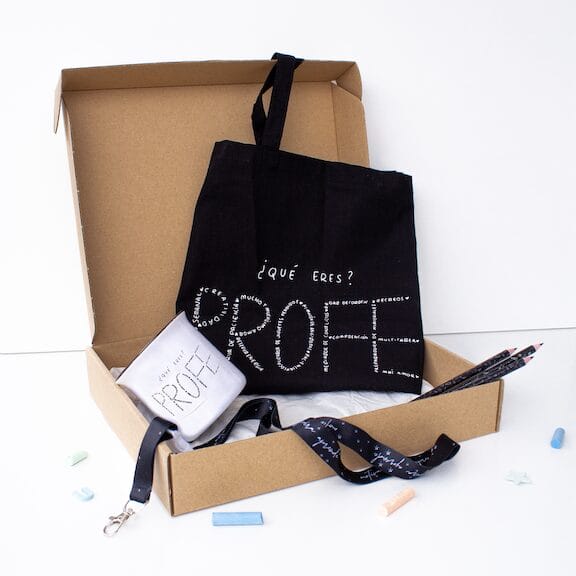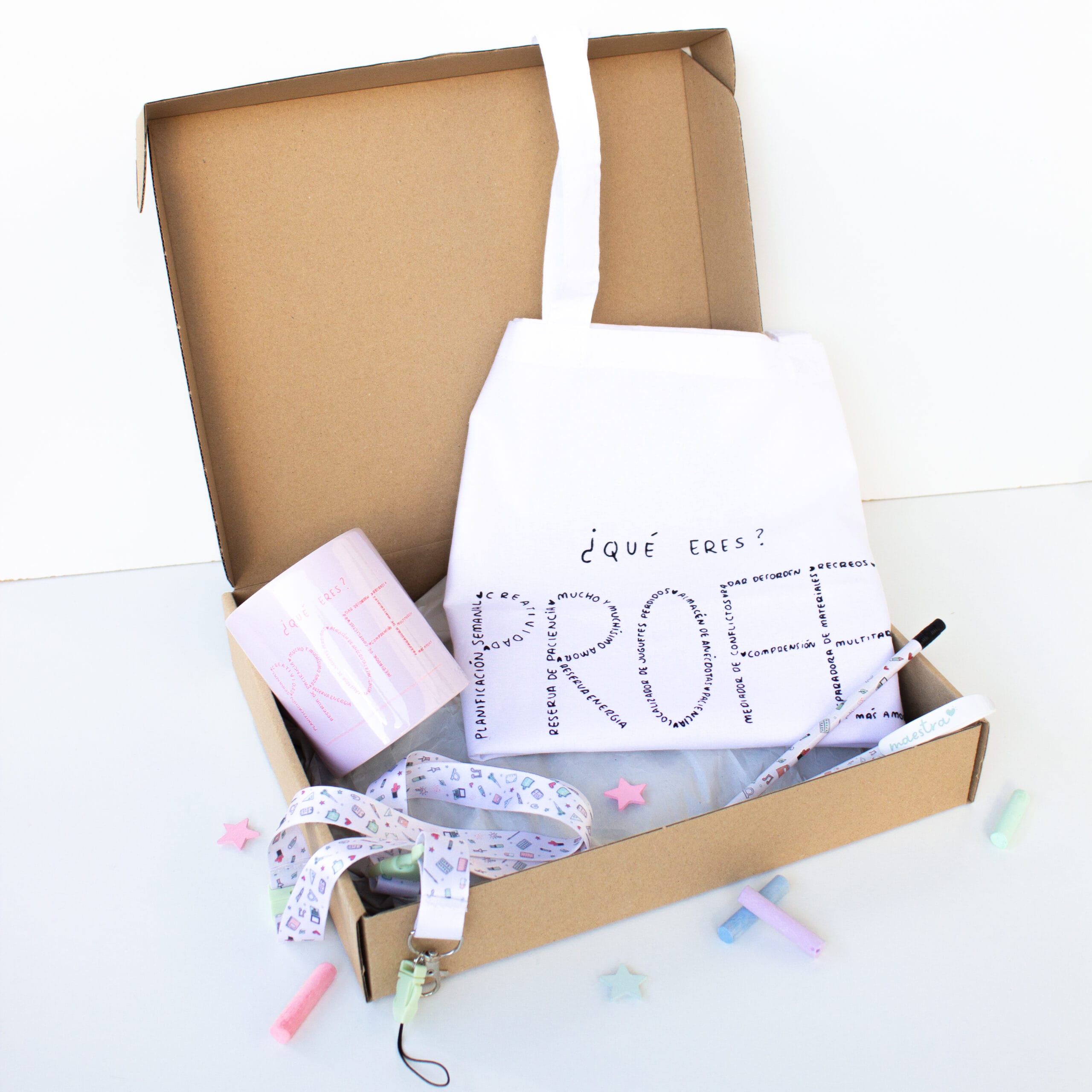 La caja ¿Qué eres? PROFE de 20€ es el detalle perfecto para tu compi maestro/a o para el maestro/a de tu hijo/a. Incluye: