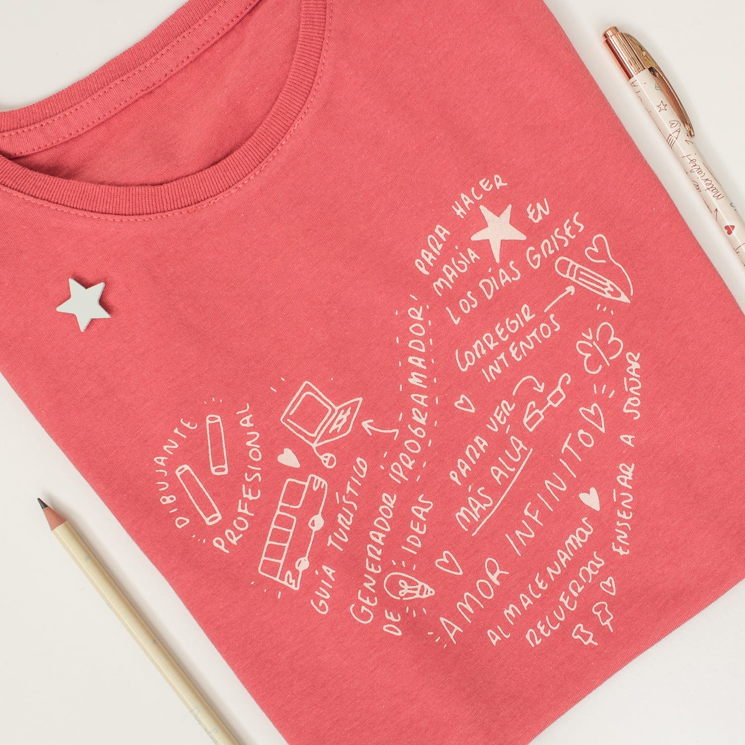 El diseño es único, y representa a todas las profes ya que incorpora un montón de atributos que nos representa formando la palabra PROFE.