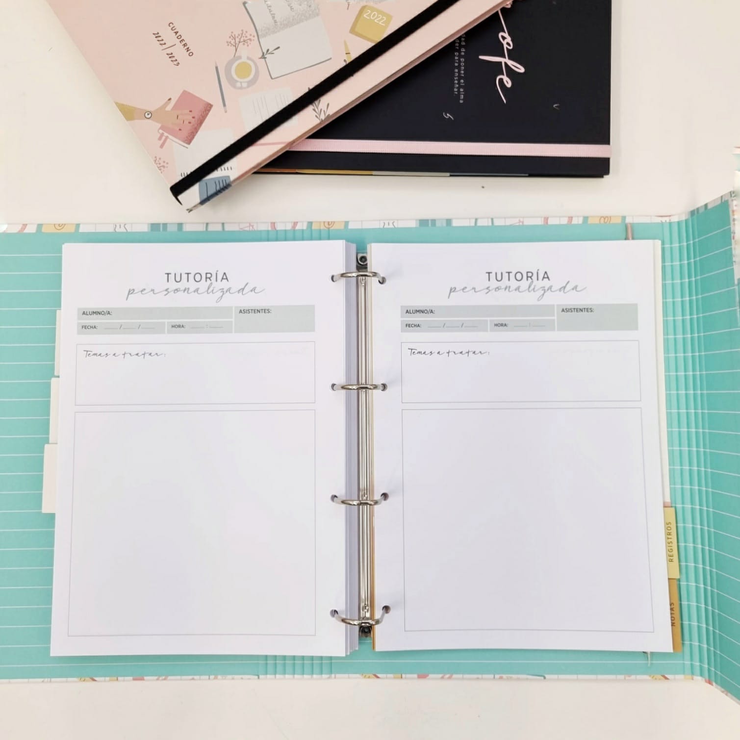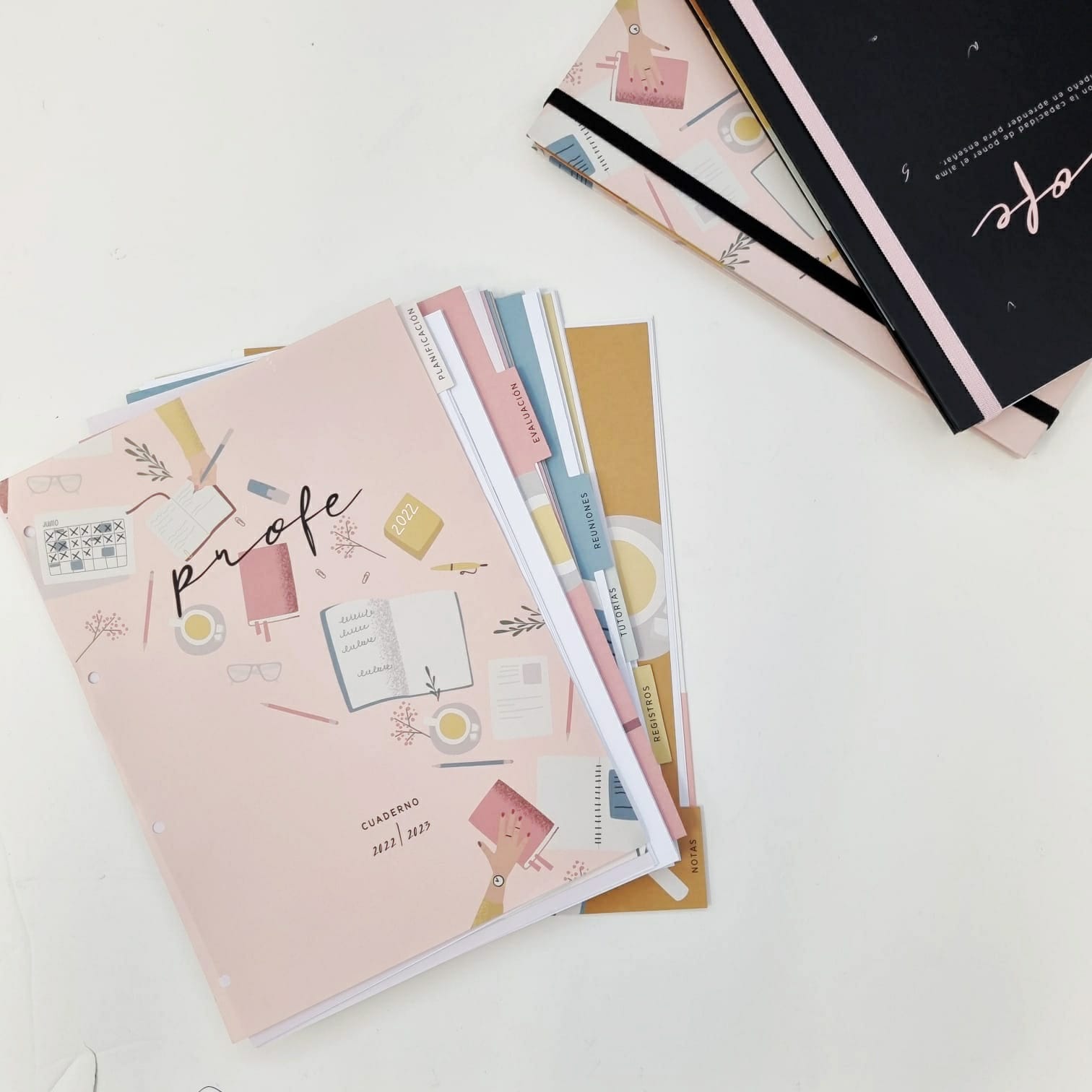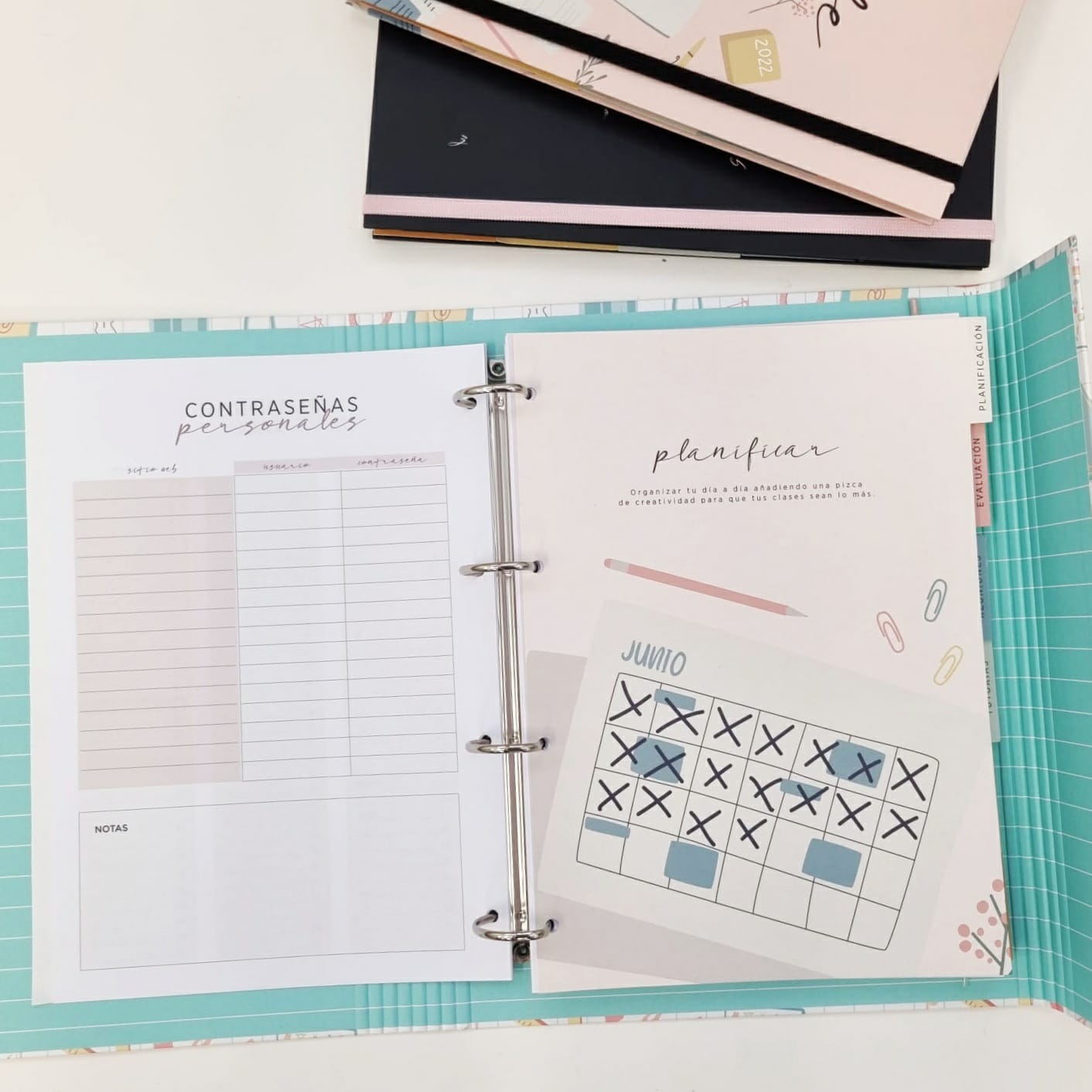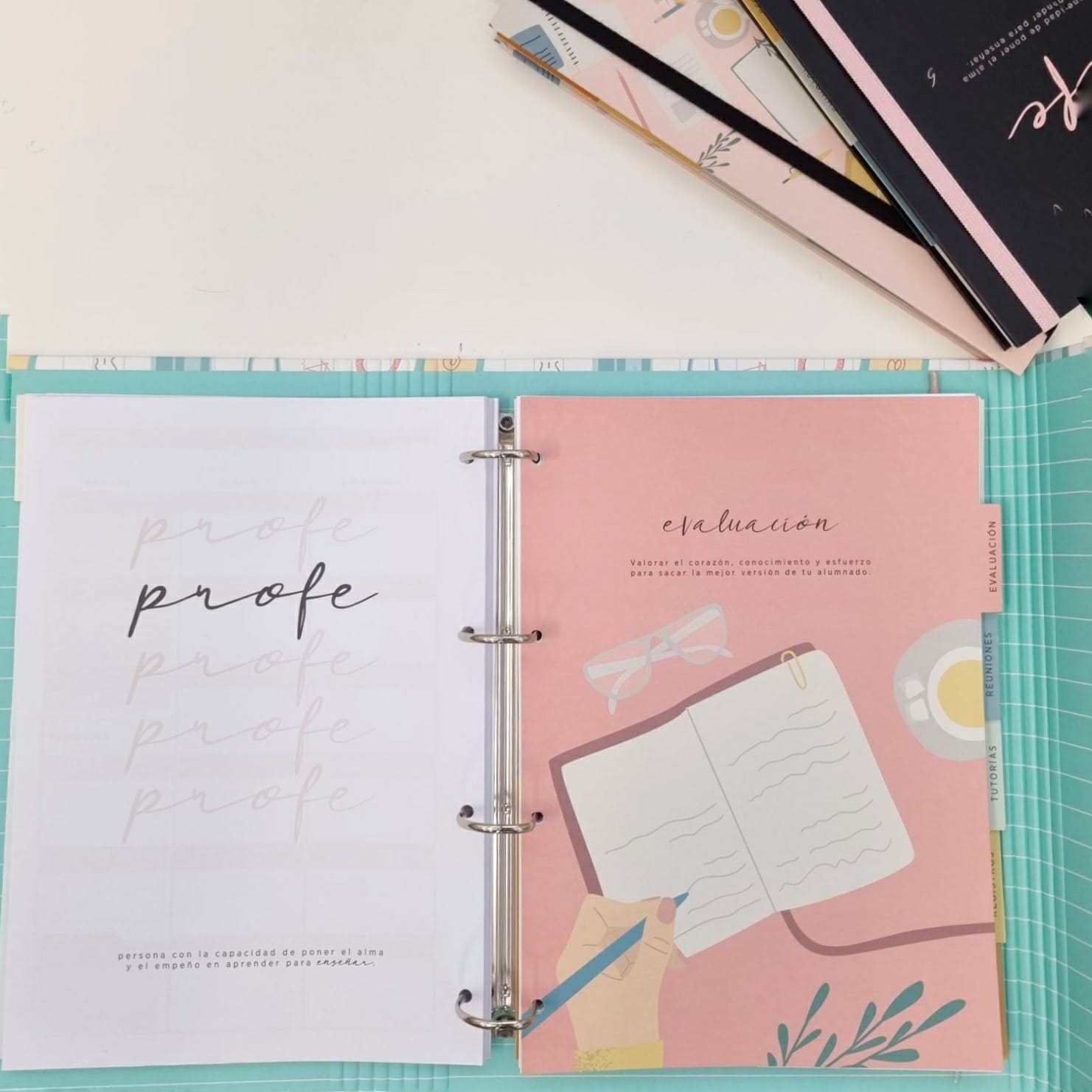 El cuaderno para profes en versión retractilado tiene el mismo formato que el cuaderno encuadernado. Es ideal para que lo combines con nuestro archivador, y te va a permitir adecuarlo a tus necesidades: cambinado el orden, reduciendo páginas, archivando solo las que uses día a día…