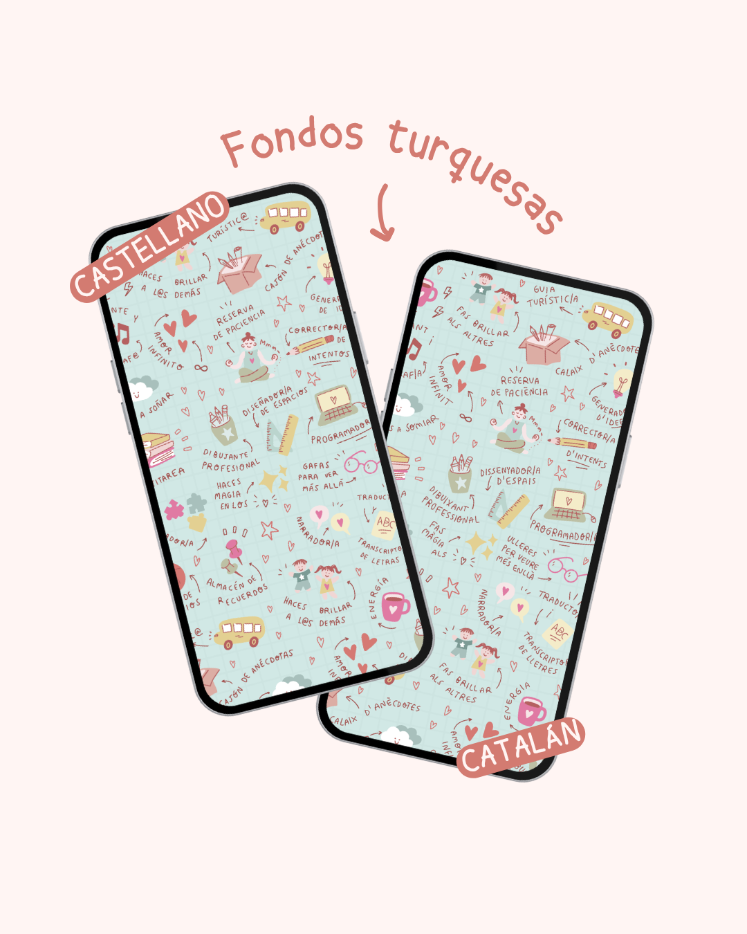 Fondo pantalla para móvil «Cosas de cole» turquesa