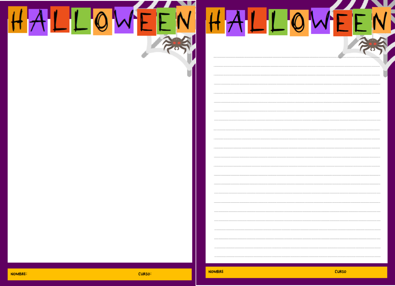 - Plantillas de escritura: por si quieres trabajar la expresión escrita. Puedes utilizar los juegos para motivarlos y darles un punto de partida. Incluye versión en blanco y en pauta. La versión en blanco también podéis usarla para hacer un dibujo de Halloween.