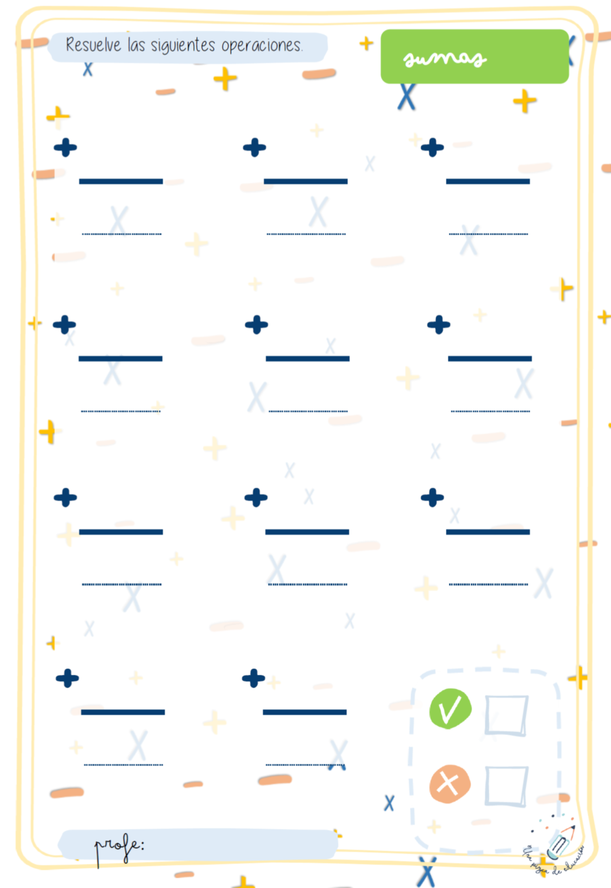Hemos insertado diferentes cuadros editables, en el PDF los distinguiréis porque se ven más sombreados. Hay varios espacios editables: número de ficha, en las operaciones y resultados y para insertar vuestro nombre.