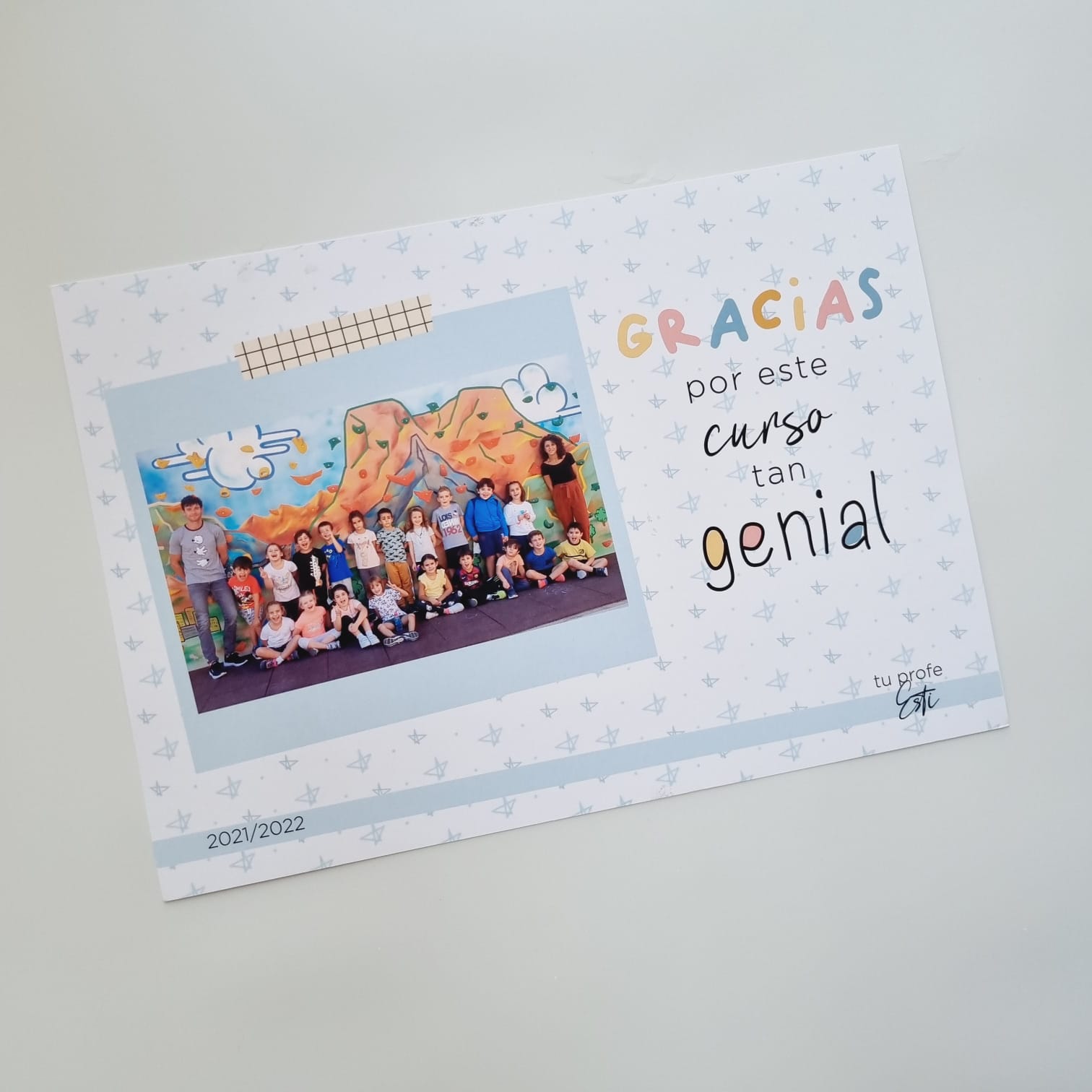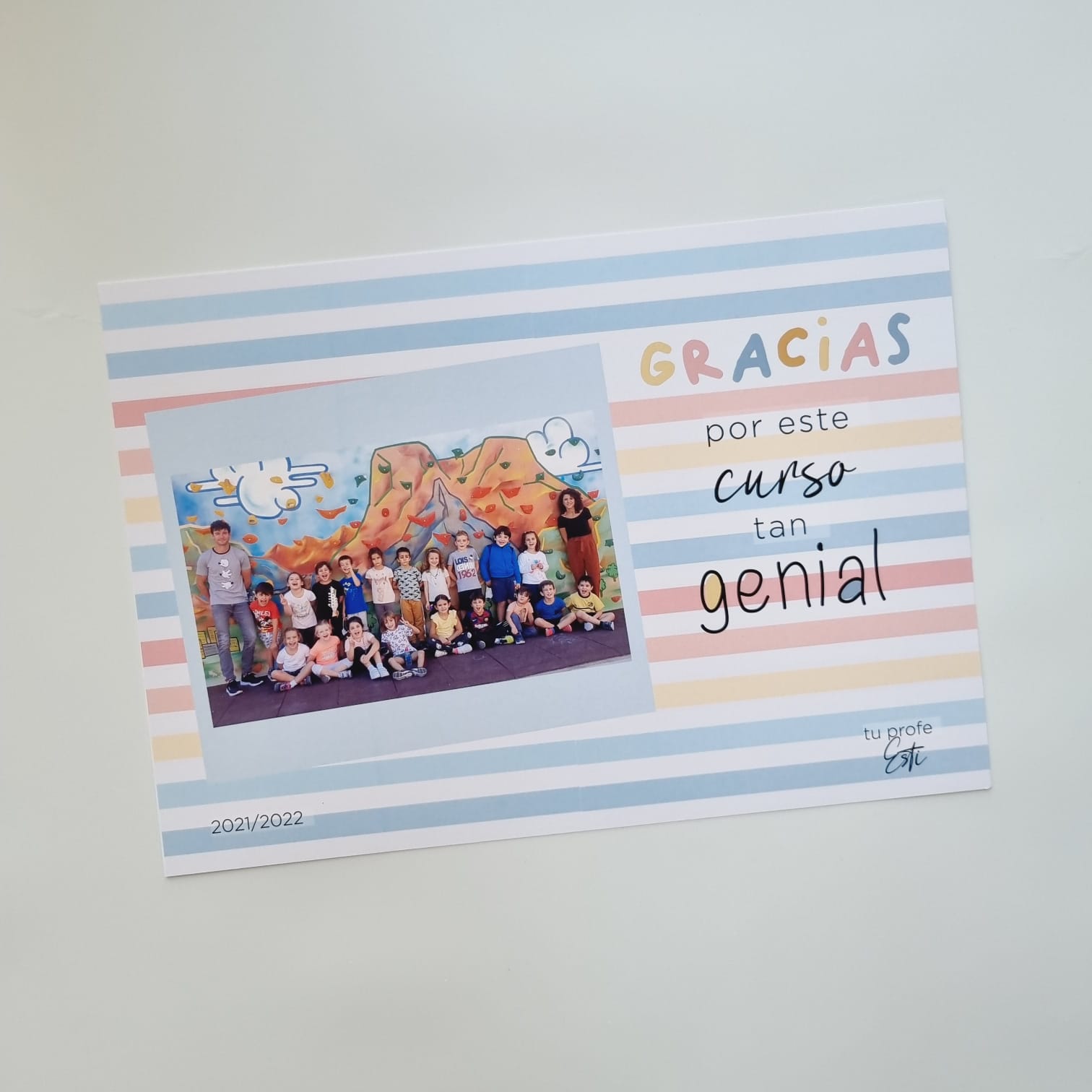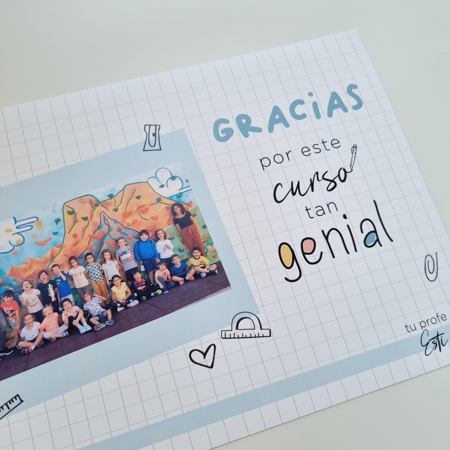 Las láminas para alumn@s son ideales como regalo de fin de curso. Un detalle sencillo pero emotivo. Solo tienes que comprar el producto eligiendo el modelo que más te interese y el idioma con el que quieres el texto. Después deberás enviarnos un email a hola@unapizcadeeducación.com con la foto, nombre del tutor/a, clase y curso escolar.