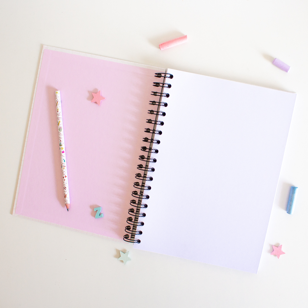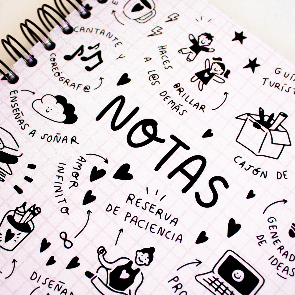 La libreta Cosas de cole  en tamaño B5 y en fondo en tono crudo de la colección 25-26 será tu aliada para anotar todas esas ideas brillantes que pasan por la mente de cualquier maestr@, profe, estudiante…