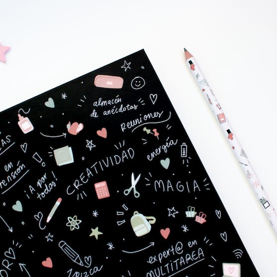 La libreta Corazón de Maestra será tu aliada para anotar todas esas ideas brillantes que pasan por la mente de cualquier maestr@, profe, estudiante… Porque aquello que no se escribe se olvida. Puedes llevarla a juego con tu agenda y cuaderno para profe.