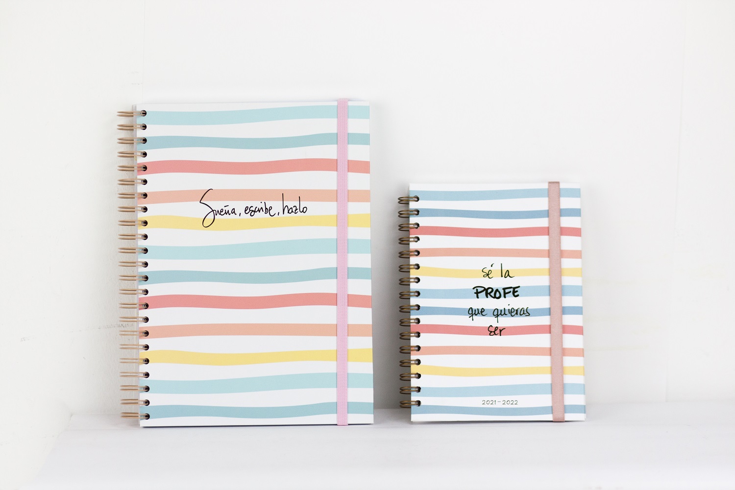 La libreta sueña, escribe, hazlo en A4 es ideal para tus anotaciones: reuniones, ideas, tutorías, dibujos… Viene con tapa dura a todo color, wire-o, goma y un montón de hojas en blanco. La portada incluye stamping dorado. A juego con tu agenda sé la profe que quieras ser.