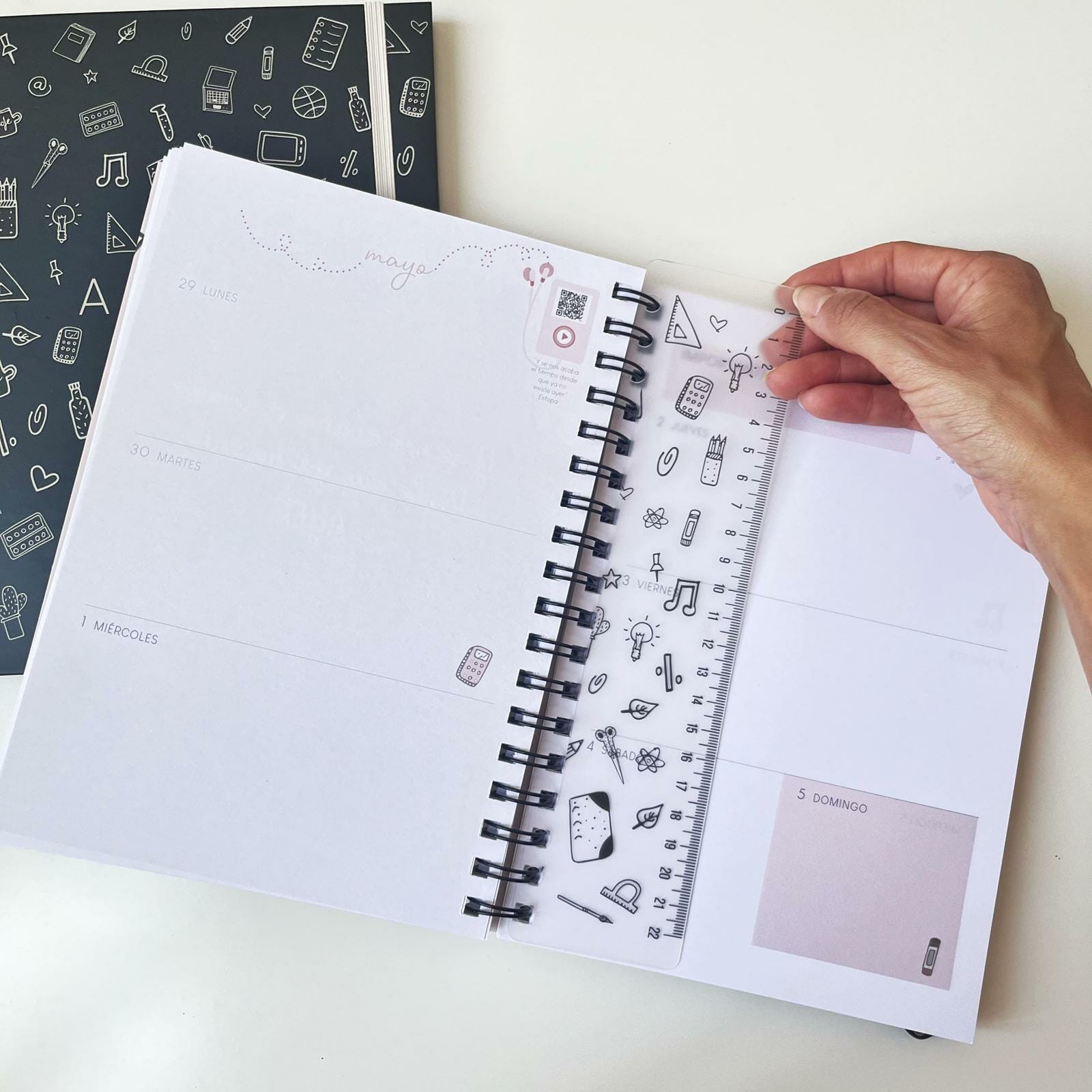 Este marcapáginas para la agenda es ideal para encontrare más fácilmente en tu día a día. Viene troquelado a medida para la agenda. Está hecho con plástico resistente y con la decoración de la colección maestra.