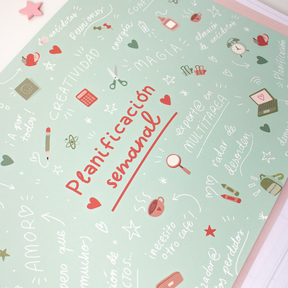 La planificación semanal es tu libreta aliada si no eres de tener el cuaderno de profe completo. Tiene tamaño a4, 200 páginas (100 hojas) para anotar todo lo que necesites. Además, no incluye fechas, por lo que podrás usarlo cómo y cuándo quieras.