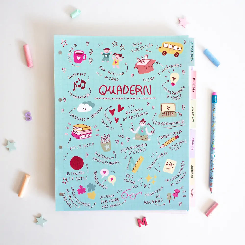 - Y LÁMINAS molonas que encontrarás en cada separador y también en el interior del cuaderno. Puedes usarlas para crear tus propios cuadros o rincón en el aula.