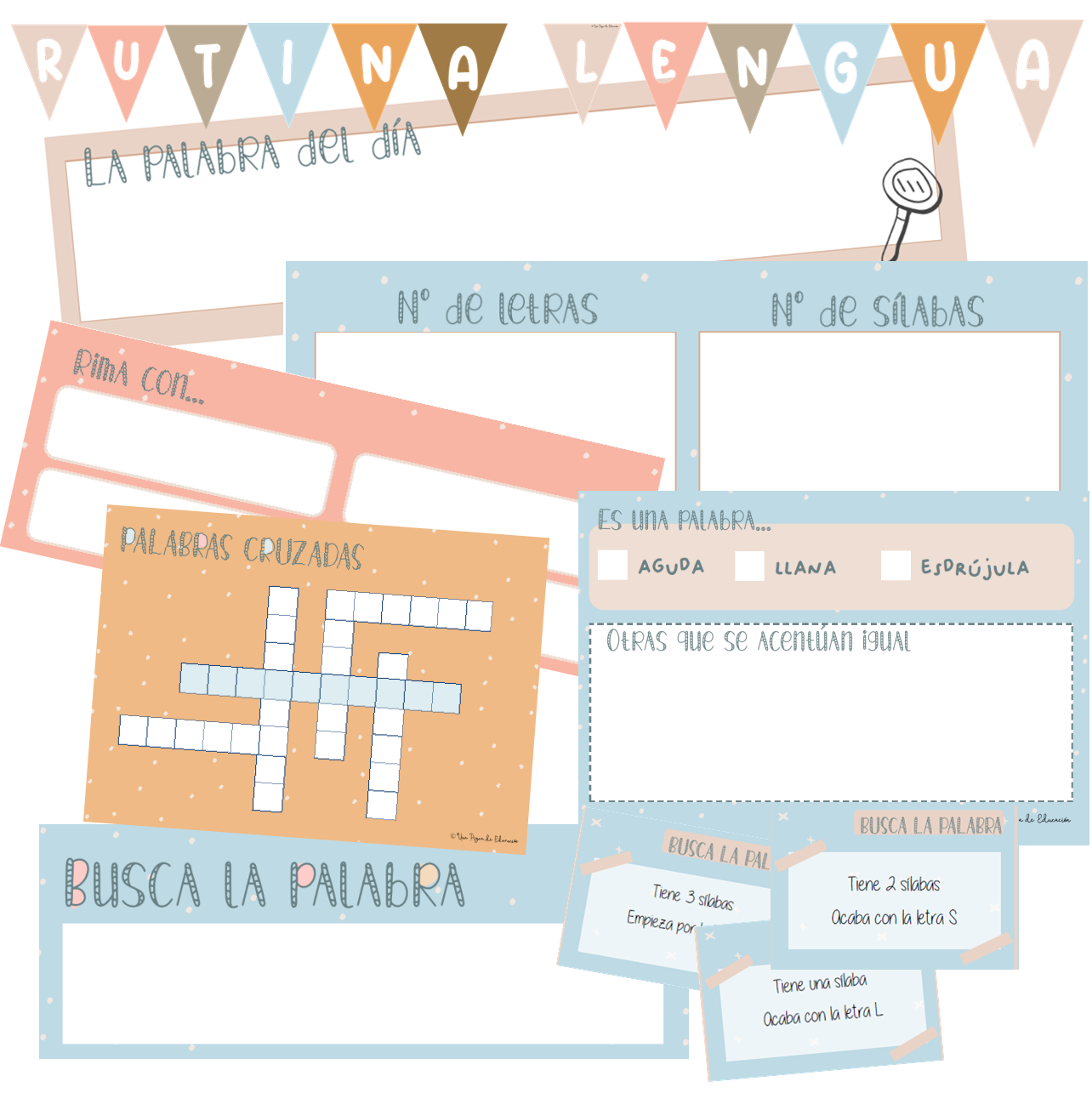 Cada mañana te proponemos que hagas una rutina diferente. Unos días puede ser esta rutina de lengua que te proponemos. Se trata de una rutina muy completa a través de la cuál trabajarás diferentes conceptos: sílabas, escritura creativa, rimas, acentuación…