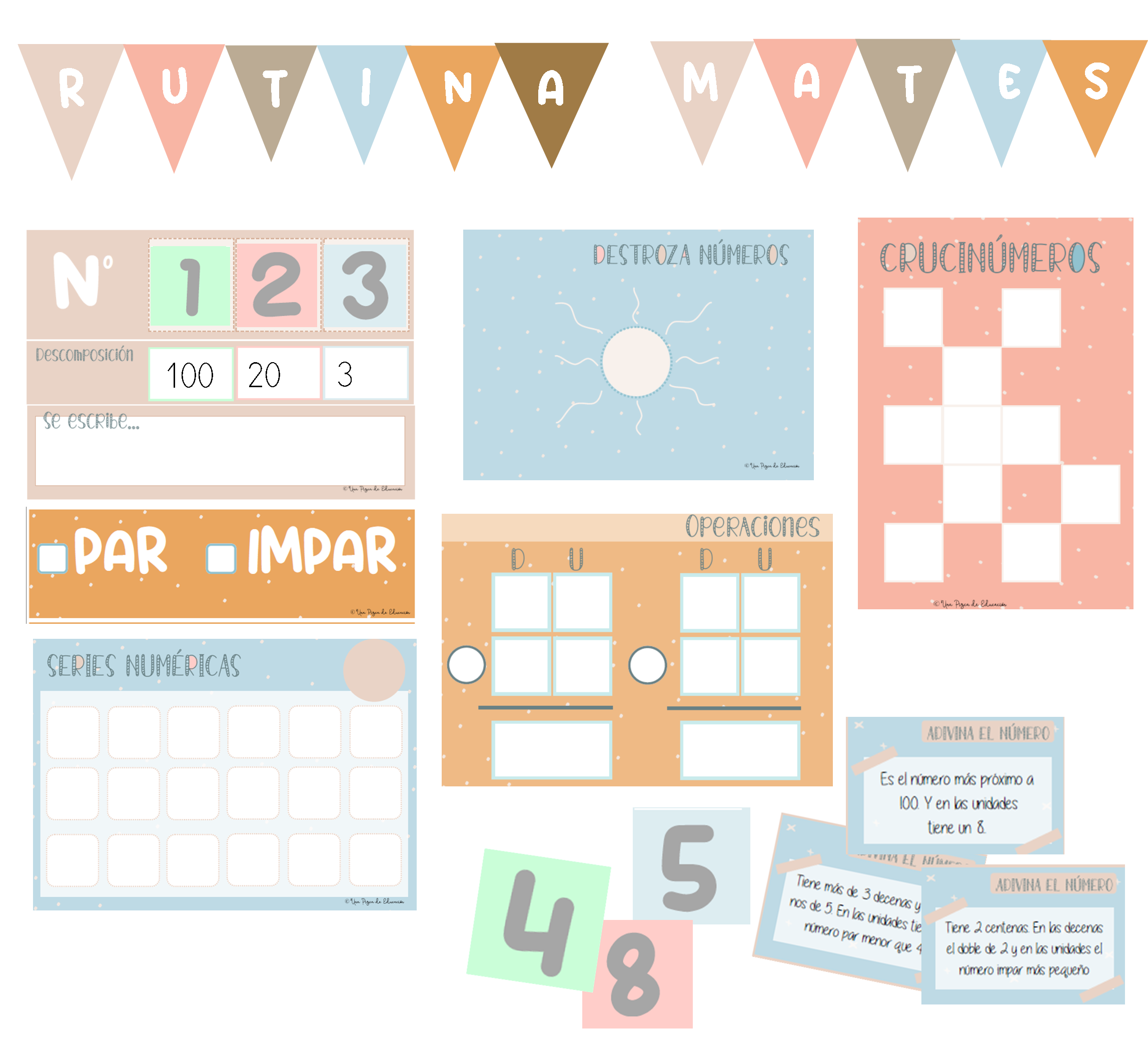Cada mañana te proponemos que hagas una rutina diferente. Unos días puede ser esta rutina matemática que te proponemos. Se trata de una rutina muy completa a través de la cuál trabajarás diferentes conceptos matemáticos: descomposición, escritura de números, operaciones, series, estrategias de cálculo mental…