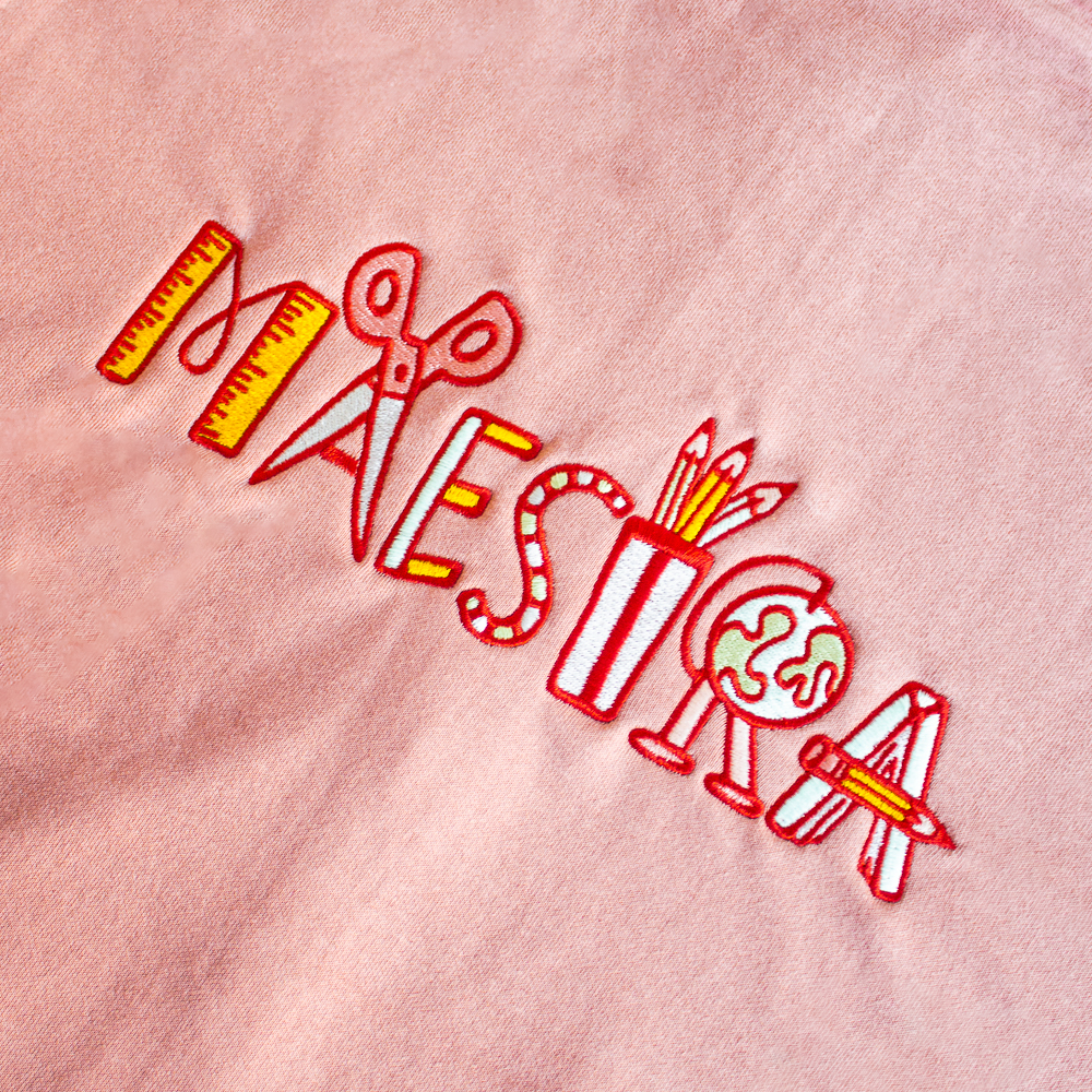 • BORADADA por delante y por detrás con la palabra MAESTRA.