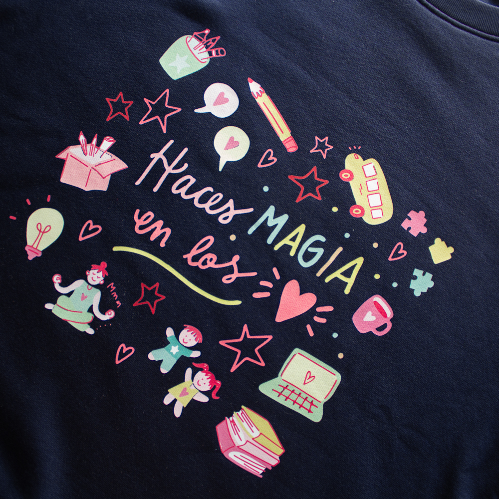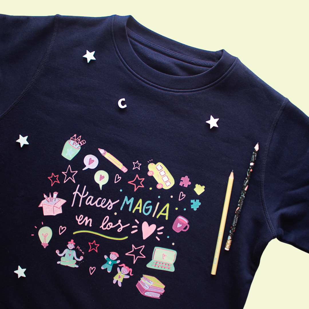 La sudadera haces magia en los corazones es ideal para maestr@s, profes, alumn@s….  Con esta prenda irás bien calentit@.
