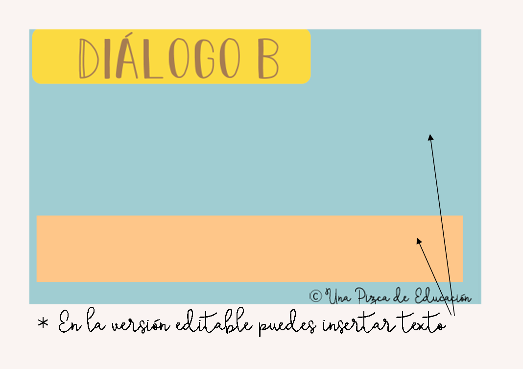 - plantillas editables de tarjetas de diálogo, para que tú mism@ crees tus tarjetas y amplies el material. El formato editable te permitirá insertar texto, no hacer modificaciones sobre la plantilla.