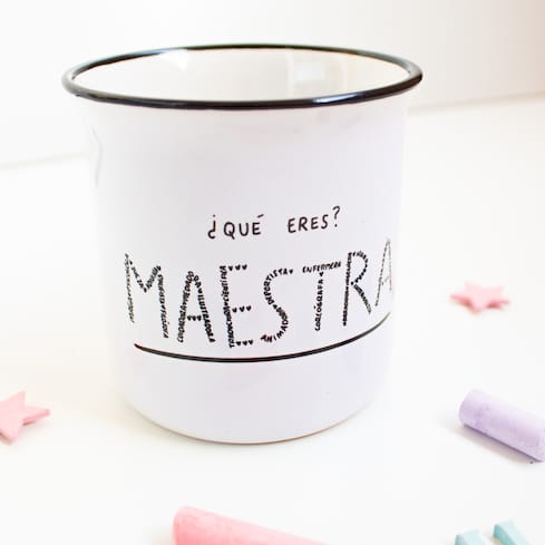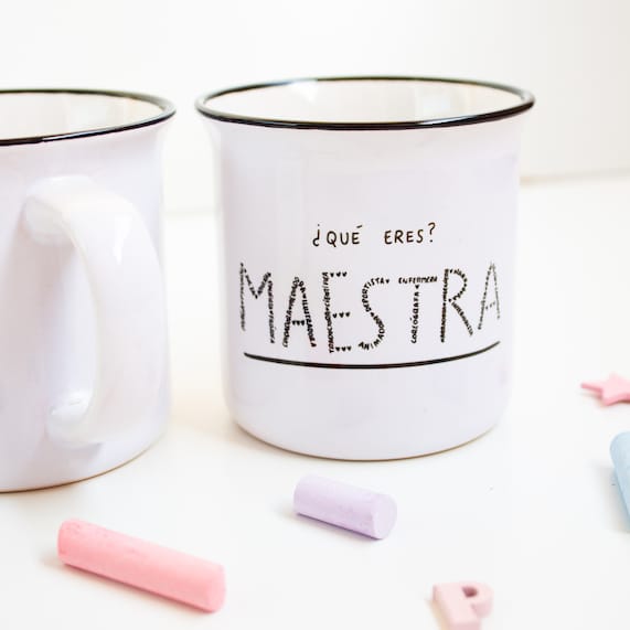 La taza de cerámica ¿Qué eres? MAESTRA es ideal para regalar a es@ profe o maestr@ tan especial. O incluso para darte un capricho y disfrutar de café o té con una taza bonita.