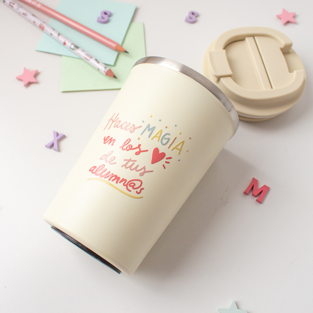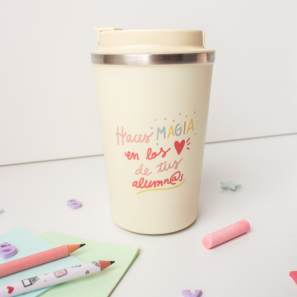 • Color: Natural beige mate y estampado a todo color con nuestra frase «haces magia en los corazones»